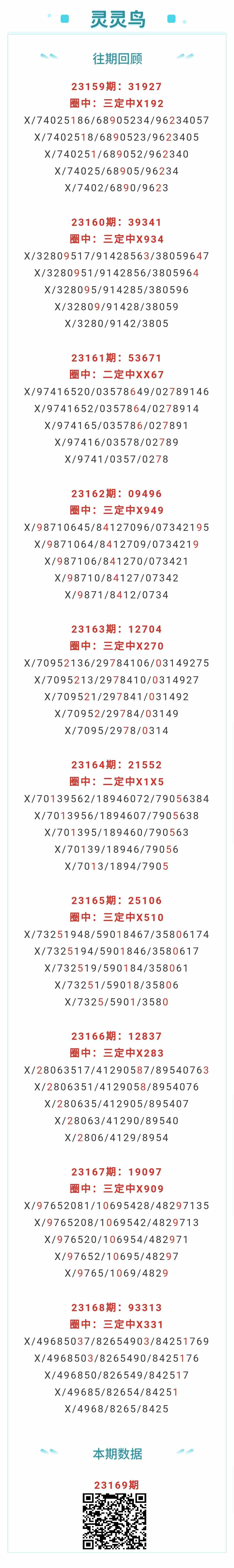 【排列五-169期】本月圈中17次三定,三定近10中8;上期三定中X331 发表于:2023-06-28 15:20:58 浏览次数:950 上一篇: 下一篇:没有了 【春哥打奖】 范围码15红10 点播26031期 【志存高远1】 范围码15红9 点播26031期 【彩女】 范围码15红9 点播26031期 排列五杀码荣誉榜