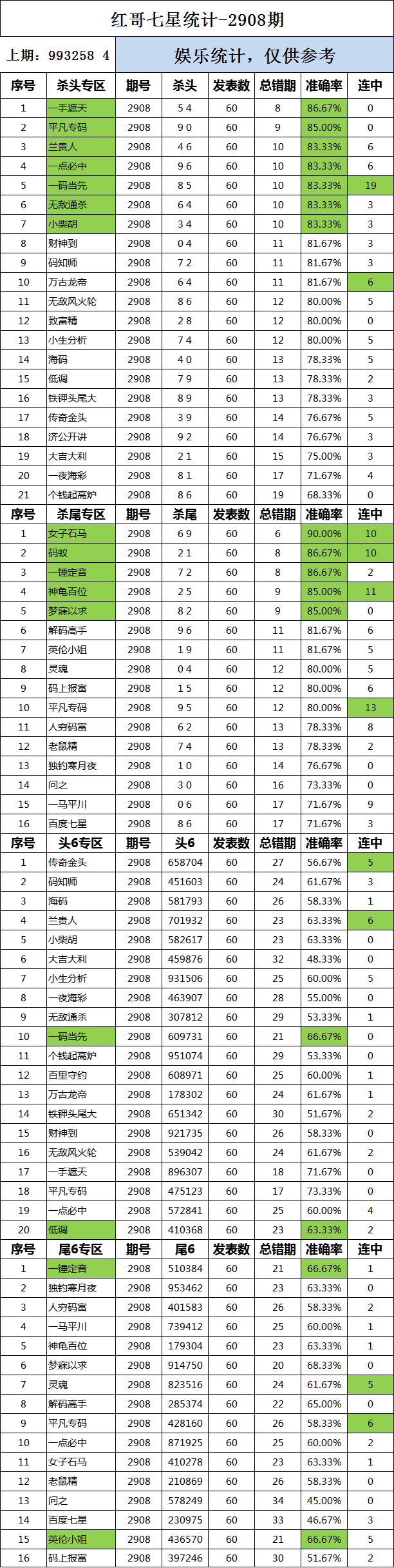 2908期:红哥统计 发表于:2023-07-05 16:01:02 浏览次数:1335 上一篇:2908期:二爹统计 下一篇:2908期:二爹统计 【春哥打奖】 范围码15红11 点播26030期 【天意人生】 范围码15红9 点播26030期 【彩女】 范围码15红9 点播26030期 排列五杀码荣誉榜
