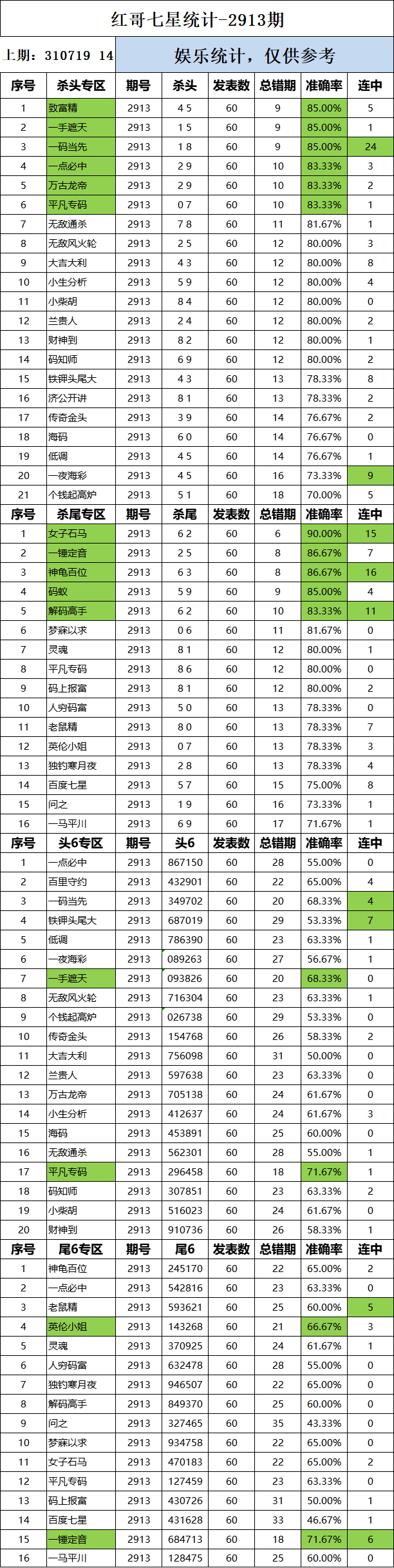 2913期:红哥统计 发表于:2023-07-17 12:01:15 浏览次数:2127 上一篇:七星彩2913期特区杀三头三尾统计 下一篇:2913期:二爹统计 【春哥打奖】 范围码15红11 点播26030期 【天意人生】 范围码15红9 点播26030期 【彩女】 范围码15红9 点播26030期 排列五杀码荣誉榜