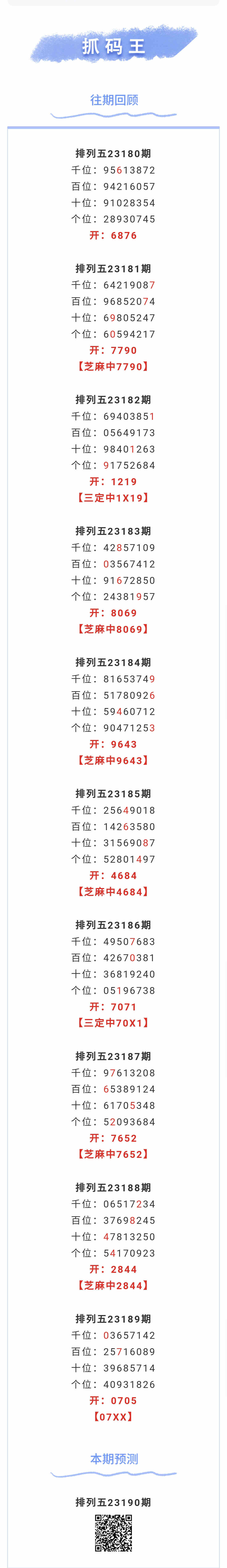 【排列五-190期】本月圈中8次芝麻,芝麻近10中6;上期07XX 发表于:2023-07-19 15:01:02 浏览次数:1334 上一篇: 下一篇:没有了 【春哥打奖】 范围码14红10 更新中 【志存高远1】 范围码14红9 更新中 【彩女】 范围码14红9 更新中 排列五杀码荣誉榜