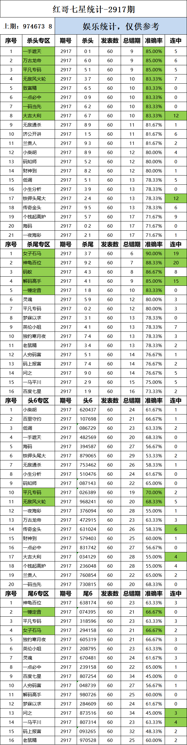 2917期:红哥统计 发表于:2023-07-26 12:01:13 浏览次数:952 上一篇:2917期:七星出号统计 下一篇:2917期:二爹统计 【春哥打奖】 范围码15红11 点播26030期 【天意人生】 范围码15红9 点播26030期 【彩女】 范围码15红9 点播26030期 排列五杀码荣誉榜
