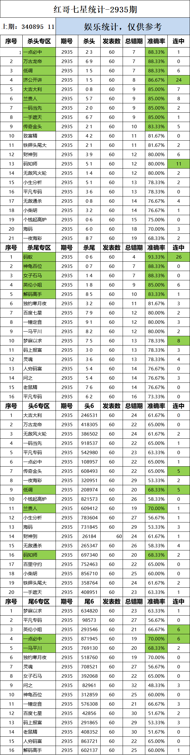 2935期:红哥统计 发表于:2023-09-06 17:01:43 浏览次数:1213 上一篇:2935期:红哥统计 下一篇:2935期:二爹统计 【春哥打奖】 范围码15红11 点播26030期 【天意人生】 范围码15红9 点播26030期 【彩女】 范围码15红9 点播26030期 排列五杀码荣誉榜