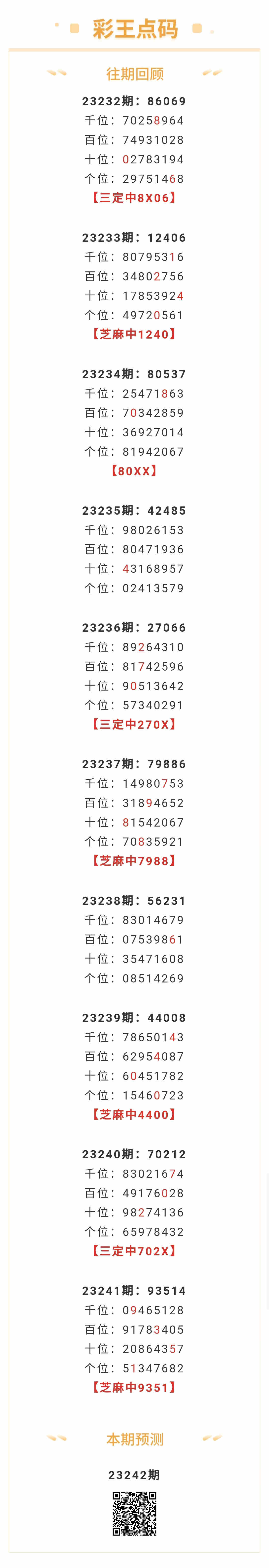 【排列五-242期】本月圈中3次芝麻,芝麻近10中4;上期芝麻中9351 发表于:2023-09-09 10:36:30 浏览次数:1090 上一篇: 下一篇:没有了 【春哥打奖】 范围码15红10 点播26031期 【志存高远1】 范围码15红9 点播26031期 【彩女】 范围码15红9 点播26031期 排列五杀码荣誉榜