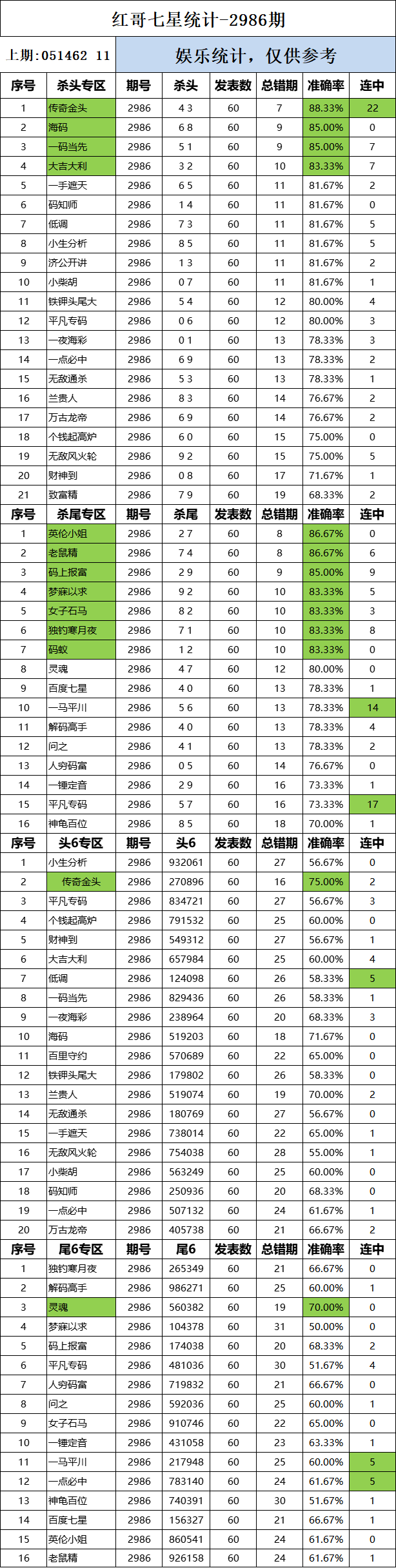 2986期:红哥统计 发表于:2024-01-08 10:02:03 浏览次数:667 上一篇:排列五第24008期唯我独尊 下一篇:2986期:二爹统计 【春哥打奖】 范围码15红11 点播26030期 【天意人生】 范围码15红9 点播26030期 【彩女】 范围码15红9 点播26030期 排列五杀码荣誉榜