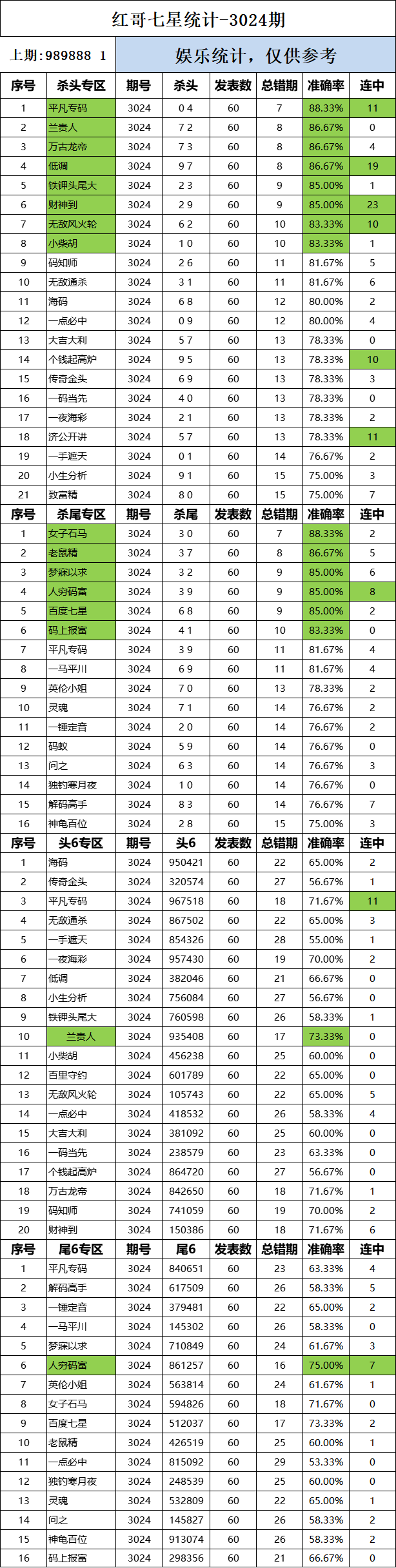 3024期:红哥统计 发表于:2024-04-15 09:32:24 浏览次数:697 上一篇:排列五第24096期不忘初心 下一篇:3024期:二爹统计 【春哥打奖】 范围码15红11 点播26030期 【天意人生】 范围码15红9 点播26030期 【彩女】 范围码15红9 点播26030期 排列五杀码荣誉榜