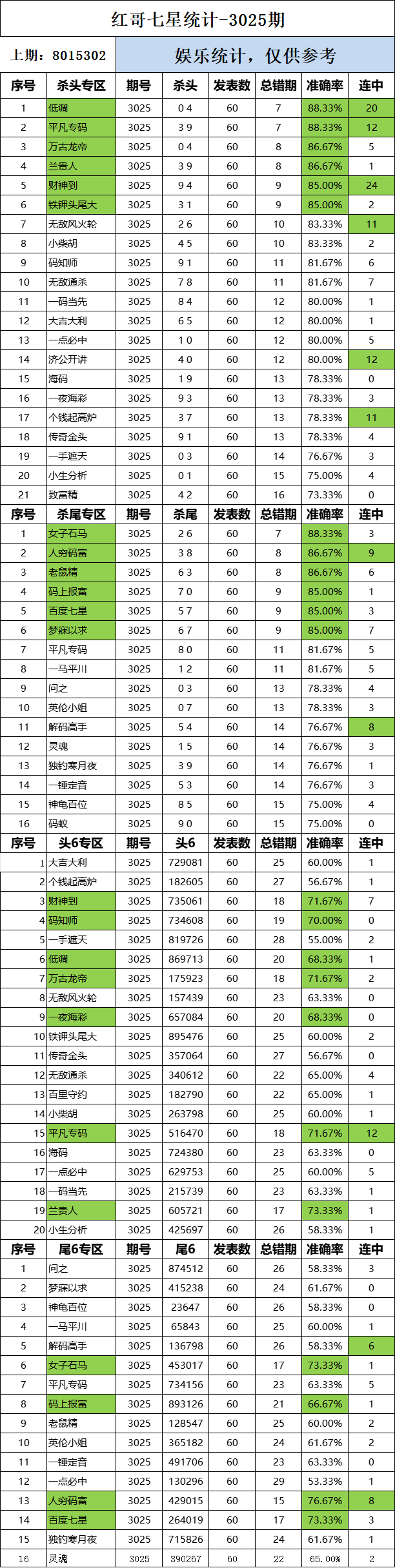 3025期:红哥统计 发表于:2024-04-17 12:02:26 浏览次数:705 上一篇: 下一篇:3025期:二爹统计 【春哥打奖】 范围码15红11 点播26030期 【天意人生】 范围码15红9 点播26030期 【彩女】 范围码15红9 点播26030期 排列五杀码荣誉榜