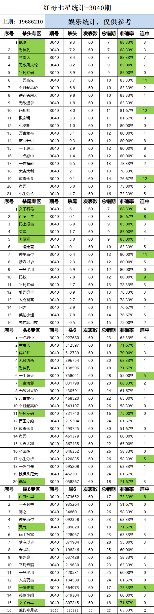 3040期:红哥统计 发表于:2024-05-22 16:32:24 浏览次数:746 上一篇:3040期:二爹统计 下一篇:3040期:二爹统计 【春哥打奖】 范围码15红11 点播26030期 【天意人生】 范围码15红9 点播26030期 【彩女】 范围码15红9 点播26030期 排列五杀码荣誉榜