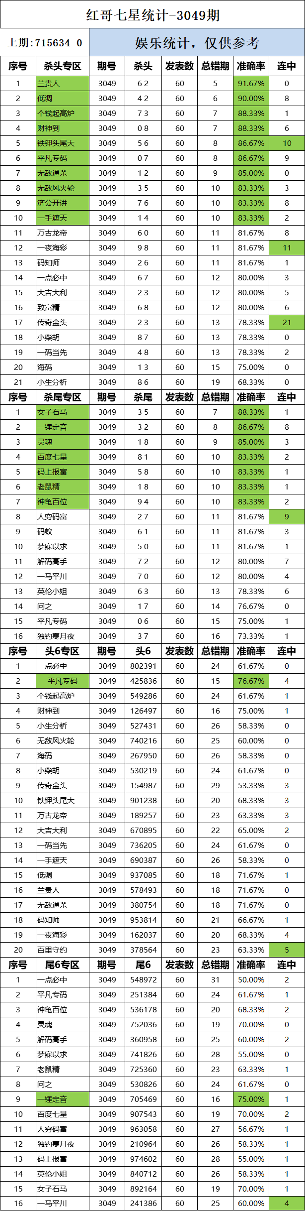 3049期:红哥统计 发表于:2024-06-12 10:02:33 浏览次数:690 上一篇:排列五第24154期唯我独尊 下一篇:3049期:二爹统计 【春哥打奖】 范围码15红11 点播26030期 【天意人生】 范围码15红9 点播26030期 【彩女】 范围码15红9 点播26030期 排列五杀码荣誉榜