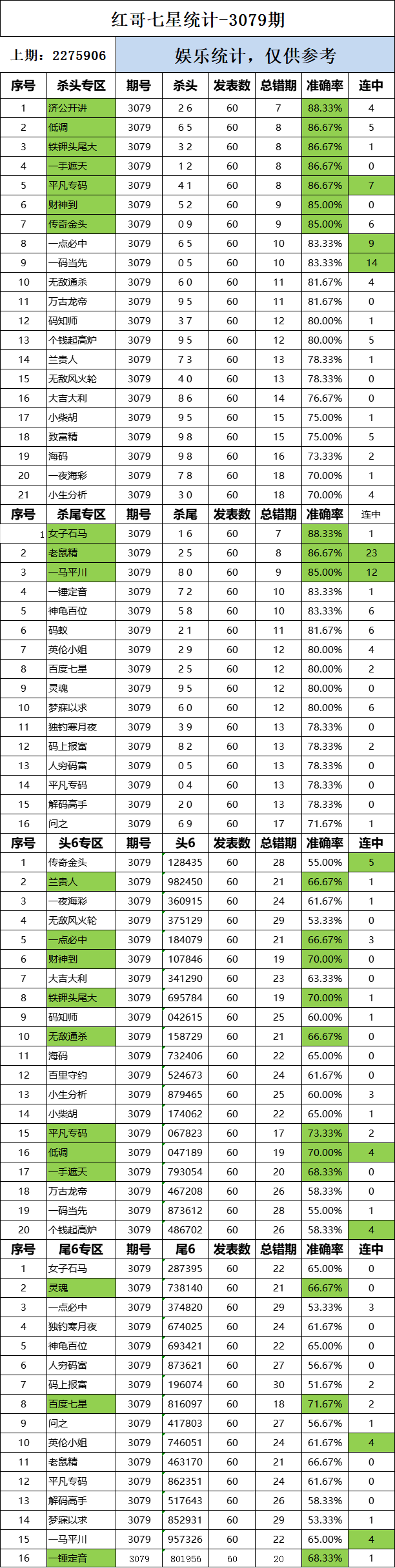 3079期:红哥统计 发表于:2024-08-21 15:32:50 浏览次数:643 上一篇:3079期:红哥统计 下一篇:3079期:二爹统计 【春哥打奖】 范围码15红11 点播26030期 【天意人生】 范围码15红9 点播26030期 【彩女】 范围码15红9 点播26030期 排列五杀码荣誉榜
