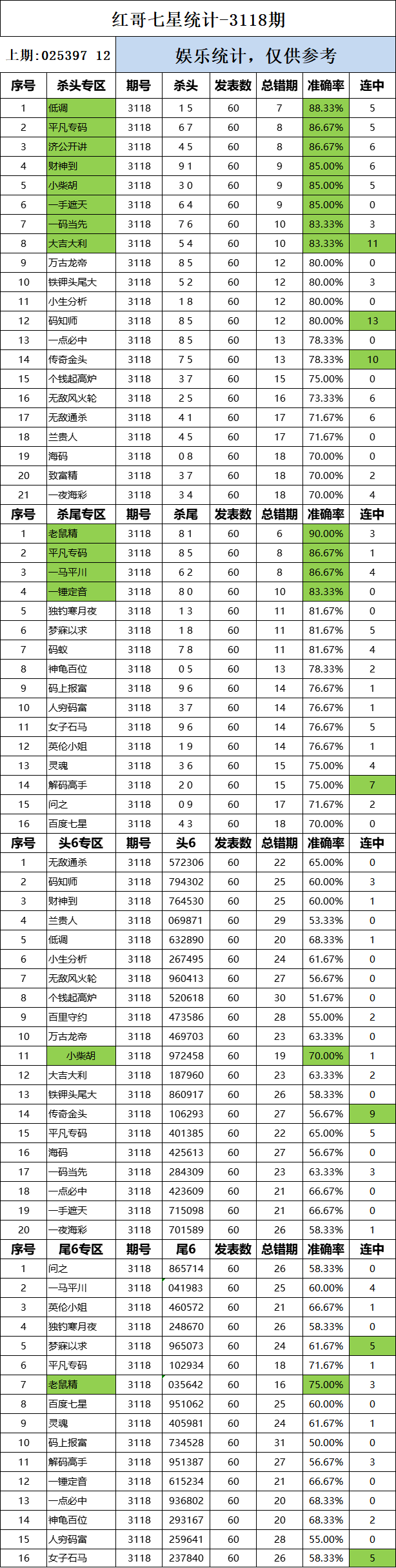 3118期:红哥统计 发表于:2024-11-25 10:33:07 浏览次数:831 上一篇:联通彩票手机报第3117期预测信息 下一篇:3118期:二爹统计 【春哥打奖】 范围码15红11 点播26030期 【天意人生】 范围码15红9 点播26030期 【彩女】 范围码15红9 点播26030期 排列五杀码荣誉榜