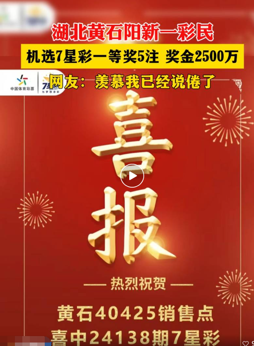 2024年12月1日,7星彩第24138期的开奖引发了广泛关注。据记者了解,黄石市一位幸运购彩者在此次开奖中,凭借一注彩票幸运中得了7星彩一等奖,总奖金高达2500万元。这一奖项不仅刷新了当地彩票历史,也为该地区的购彩者带来了满满的惊喜。