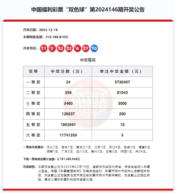 本期双色球的总销量为4.13亿元,筹集了公益金1.48亿元,奖池金额达到21.31亿元。