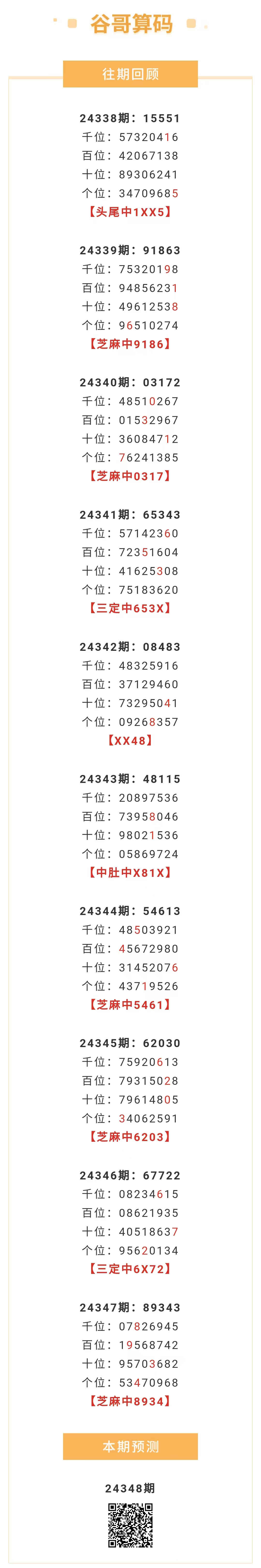 【排列五-24348期】本月圈中13次芝麻,芝麻近10中5;上期芝麻中8934 发表于:2024-12-27 12:12:02 浏览次数:373 上一篇: 下一篇:排列五24348期再三再四死数预测 【春哥打奖】 范围码15红10 点播26031期 【志存高远1】 范围码15红9 点播26031期 【彩女】 范围码15红9 点播26031期 排列五杀码荣誉榜