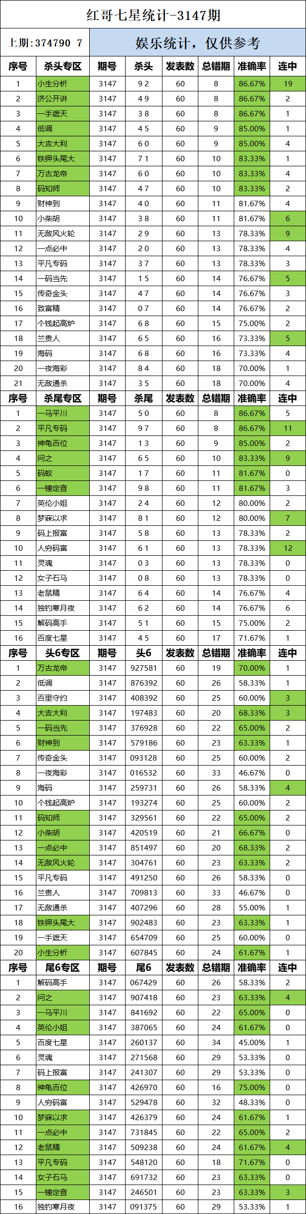 3147期:红哥统计 发表于:2025-02-10 10:03:28 浏览次数:555 上一篇:排列五第25031期志存高远 下一篇:3147期:二爹统计 【春哥打奖】 范围码15红11 点播26030期 【天意人生】 范围码15红9 点播26030期 【彩女】 范围码15红9 点播26030期 排列五杀码荣誉榜