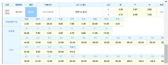 竞彩官方给本场国王杯决赛比拼开出2.00(巴萨胜)、3.07(平局)、2.80(皇马胜)的赔率组合,对于赛前夺冠呼声较高的巴萨给予其实力题材认可。比分赔率中,双方1-1战平和巴萨2-1赢球同为1赔8最低,双方2-2战平和皇马2-1捧杯同为1赔10紧随其后,或多或少体现出双方在国王杯决赛拖入加时赛颇为忌惮。本场预计会非常紧张刺激,球迷们可以期待这场精彩绝伦的对决或许将拖入加时赛,甚至点球鏖战,让我们拭目以待!