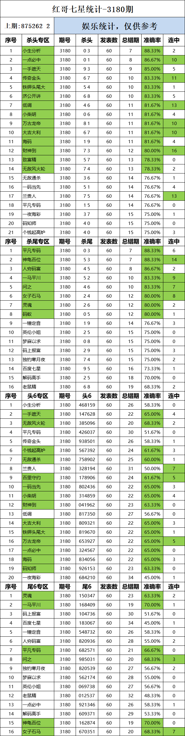 3180期:红哥统计 发表于:2025-04-28 10:33:20 浏览次数:569 上一篇:3180期:红哥统计 下一篇:3180期:二爹统计 【春哥打奖】 范围码15红11 点播26030期 【天意人生】 范围码15红9 点播26030期 【彩女】 范围码15红9 点播26030期 排列五杀码荣誉榜