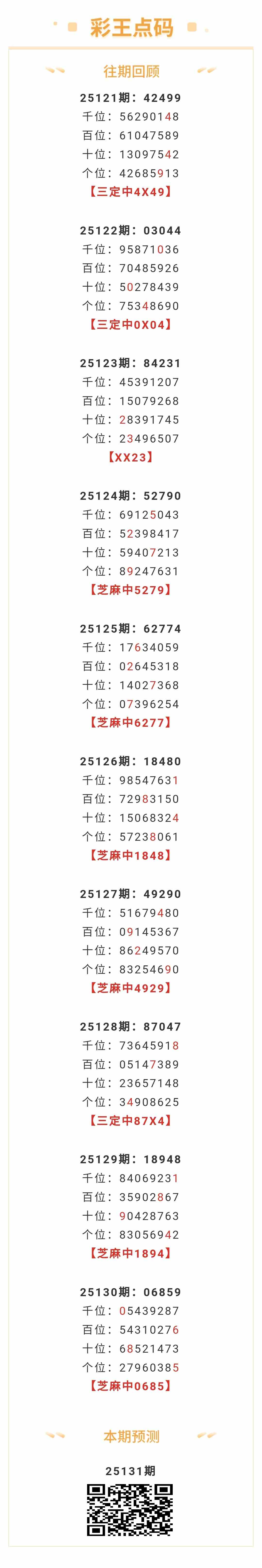 【排列五-131期】本月圈中8次芝麻,芝麻近10中6;上期芝麻中0685 发表于:2025-05-21 14:52:36 浏览次数:528 上一篇:七星彩25057期随大流本期死号分析 下一篇:没有了 【春哥打奖】 范围码15红11 点播26030期 【天意人生】 范围码15红9 点播26030期 【彩女】 范围码15红9 点播26030期 排列五杀码荣誉榜