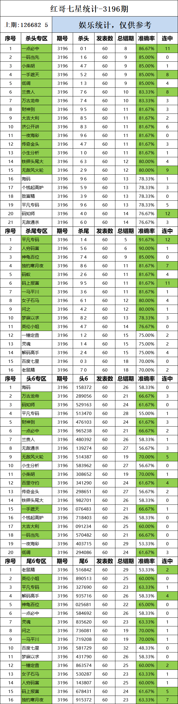 3196期:红哥统计 发表于:2025-06-04 15:33:04 浏览次数:557 上一篇:3196期:红哥统计 下一篇:3196期:二爹统计 【春哥打奖】 范围码15红11 点播26030期 【天意人生】 范围码15红9 点播26030期 【彩女】 范围码15红9 点播26030期 排列五杀码荣誉榜