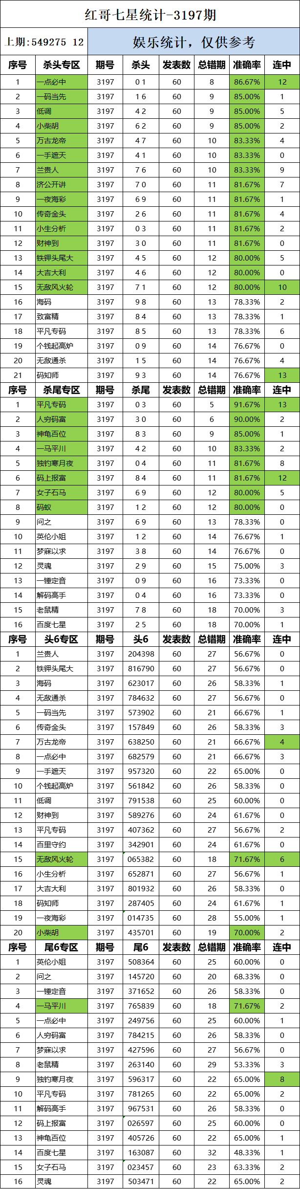 3197期:红哥统计 发表于:2025-06-07 12:03:05 浏览次数:449 上一篇: 下一篇:3197期:二爹统计 【春哥打奖】 范围码15红11 点播26030期 【天意人生】 范围码15红9 点播26030期 【彩女】 范围码15红9 点播26030期 排列五杀码荣誉榜
