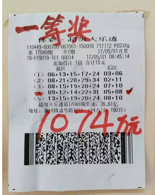 2017年潮州市体彩首个千万大奖中奖者,时逢体彩大乐透10周年的5亿大派奖期间,所以本次奖金多得了派奖的105万元。奖金总共1074万元。