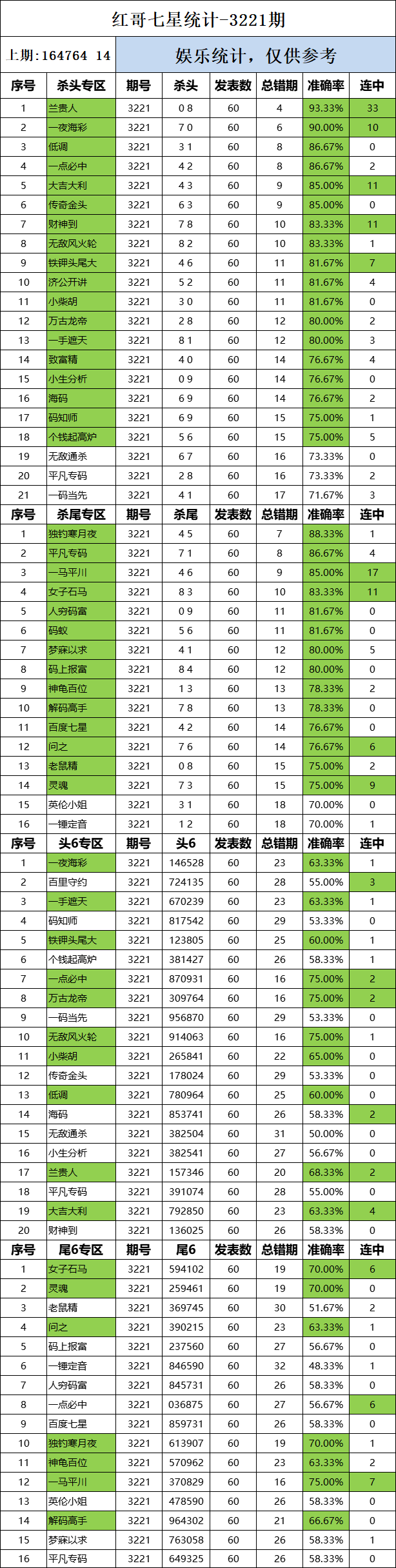 3221期:红哥统计 发表于:2025-08-02 12:00:39 浏览次数:512 上一篇:3220期:特区杀码统计 下一篇:3221期:二爹统计 【春哥打奖】 范围码14红11 更新中 【天意人生】 范围码14红9 更新中 【彩女】 范围码14红9 更新中 排列五杀码荣誉榜