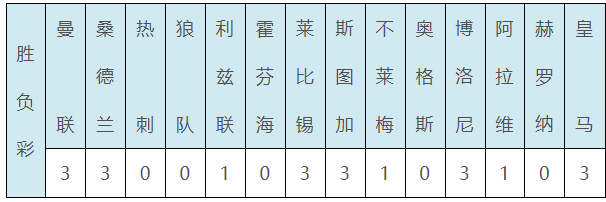 彩果方面,热刺0-1不敌伯恩茅斯爆3.9倍冷门;勒沃库森、马竞均在客场打出平局;此外赫罗纳输球、桑德兰主胜皆打出超3倍冷门;其余场次,曼联3-2伯恩利,狼队2-3埃弗顿,霍芬海姆1-3法兰克福,博洛尼亚1-0力克科莫,莱比锡、斯图加特、拜仁、皇马均打出赢球正路。