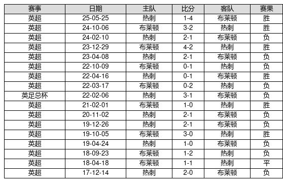 布莱顿 VS 热刺两队近10年的交战次数为17场,布莱顿6胜1平10负,赢球概率为35.3%,平局概率为5.9%,输球概率为58.8%。