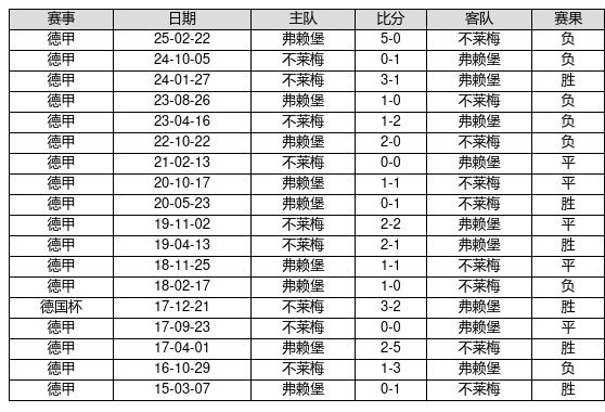 不莱梅 VS 弗赖堡两队近10年的交战次数为18场,不莱梅6胜5平7负,赢球概率为33.3%,平局概率为27.8%,输球概率为38.9%。
