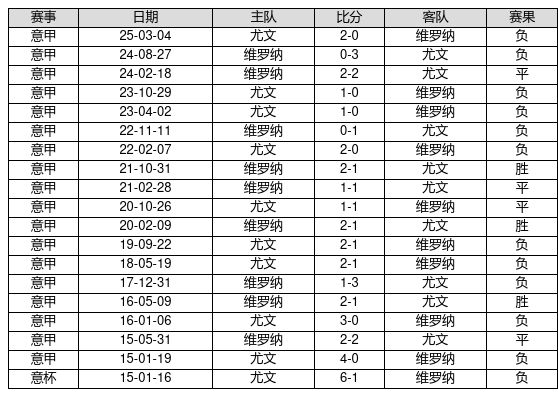 维罗纳 VS 尤文两队近10年的交战次数为19场,维罗纳3胜4平12负,赢球概率为15.8%,平局概率为21.1%,输球概率为63.2%。