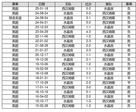 西汉姆联 VS 水晶宫两队近10年的交战次数为22场,西汉姆联7胜7平8负,赢球概率为31.8%,平局概率为31.8%,输球概率为36.4%。