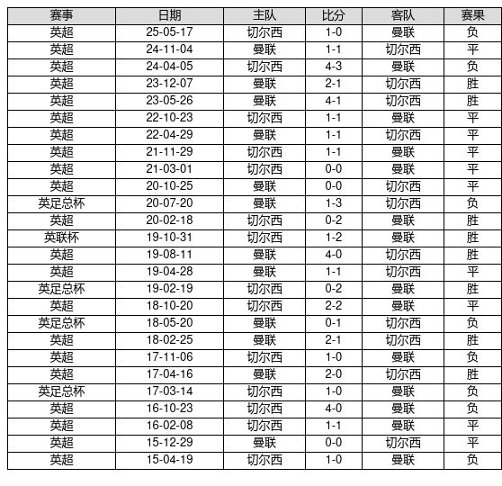 曼联 VS 切尔西两队近10年的交战次数为26场,曼联8胜10平8负,赢球概率为30.8%,平局概率为38.5%,输球概率为30.8%。