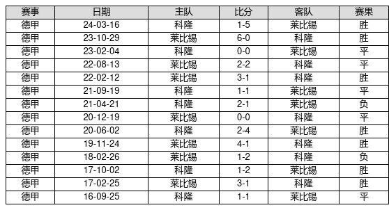 莱比锡 VS 科隆两队近10年的交战次数为14场,莱比锡7胜5平2负,赢球概率为50.0%,平局概率为35.7%,输球概率为14.3%。