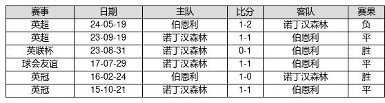 伯恩利 VS 诺丁汉森林两队近10年的交战次数为6场,伯恩利2胜3平1负,赢球概率为33.3%,平局概率为50.0%,输球概率为16.7%。
