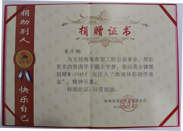 在办理兑奖手续时,陈先生在兑奖大厅看到一排排海南希望工程授予海南体彩的荣誉牌匾和证书,便主动了解捐赠事宜,并捐出168888元奖金,用于资助海南省困难学子上学。他表示彩票就是“来之于民、用之于民”,用公益践行公益,以后还会继续支持体育彩票,支持公益事业。