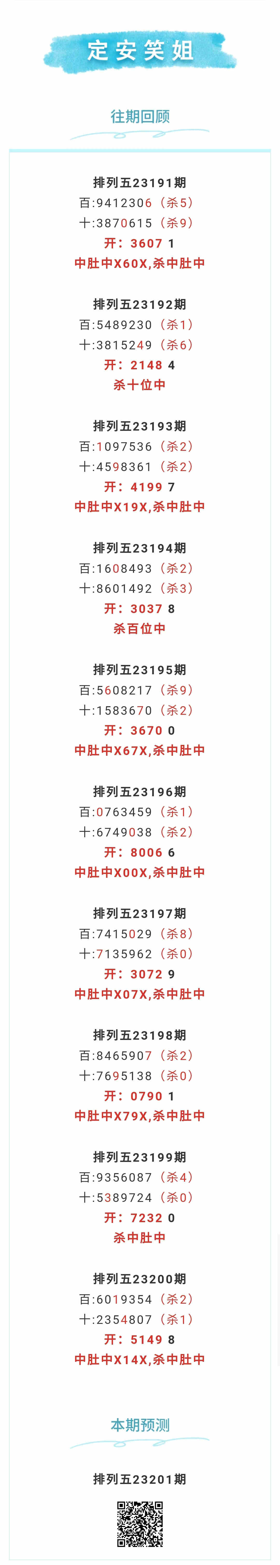 【排列五-201期】本月圈中14次中肚,中肚近10中7;上期中肚中X14X,杀中肚中 发表于:2023-07-30 17:04:26 浏览次数:1271 上一篇: 下一篇:没有了 【春哥打奖】 范围码15红10 点播26031期 【志存高远1】 范围码15红9 点播26031期 【彩女】 范围码15红9 点播26031期 排列五杀码荣誉榜
