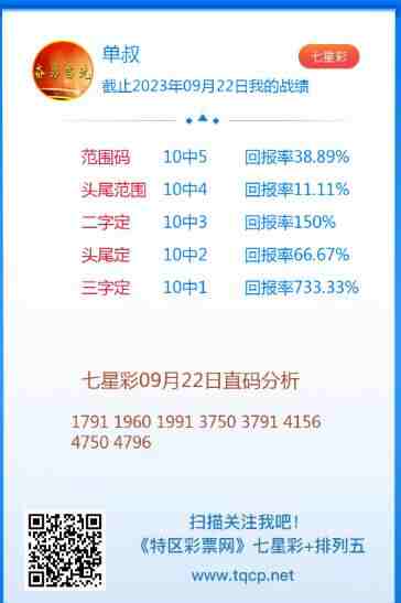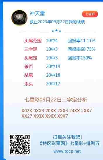 七星彩2941期点播推荐单叔、冲天雷和宝码在线3位分析师 发表于:2023-09-22 18:55:33 浏览次数:1487 上一篇:排列五23255期点播推荐灵魂、彩女和阿Q 3位分析师 下一篇:没有了 【志存高远1】 范围码15红10 点播26032期 【春哥打奖】 范围码15红9 点播26032期 【佛山无影脚】 范围码14红9 更新中 七星彩杀码荣誉榜