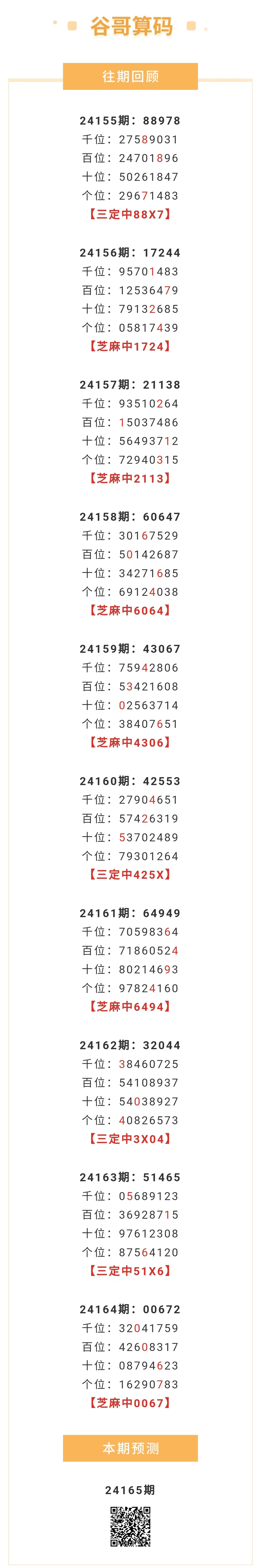 【排列五-165期】本月圈中12次芝麻,芝麻近10中6;上期芝麻中0067 发表于:2024-06-23 10:59:28 浏览次数:468 上一篇: 下一篇:没有了 【无敌通杀】 范围码14红10 更新中 【笑语】 范围码14红9 更新中 【天时地利】 范围码14红9 更新中 排列五杀码荣誉榜