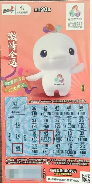 他继续说道:“我平时就喜欢购买刮刮乐,第二天我特意来到体彩网点。当时‘激情全运’这款新票的设计非常吸引我,运动主题与当时的观赛气氛特别契合,于是我买了三张试试手气。没想到,幸运来得如此突然,刮到第三张时,我就中了百万大奖!那一刻的喜悦难以形容。”