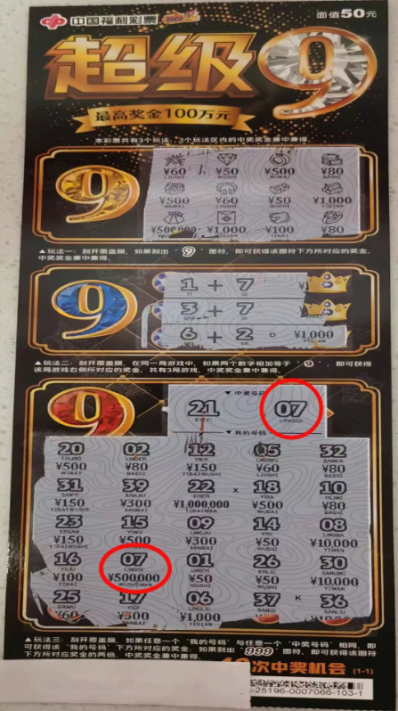 武威彩民喜中福彩刮刮乐“超级9”游戏二等奖50万元