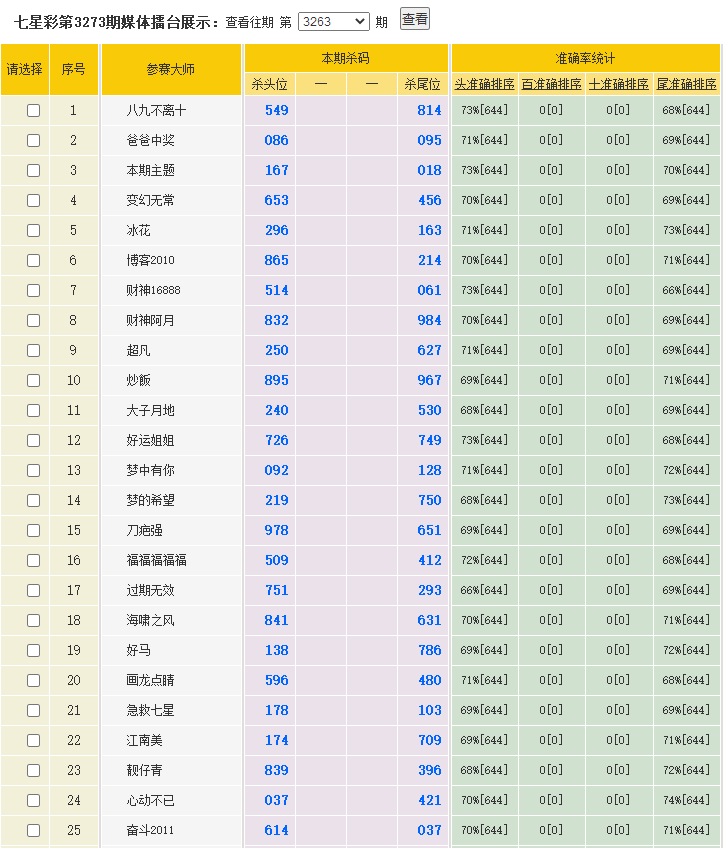七星彩3273期特区杀三头三尾统计 发表于:2025-12-03 16:00:40 浏览次数:383 上一篇:七星彩3273期特区杀一头一尾统计 下一篇:25323期:彩票魔方 【主攻头】 范围码15红10 点播26029期 【春哥打奖】 范围码15红10 点播26029期 【金山银山】 范围码15红9 点播26029期 七星彩杀码荣誉榜