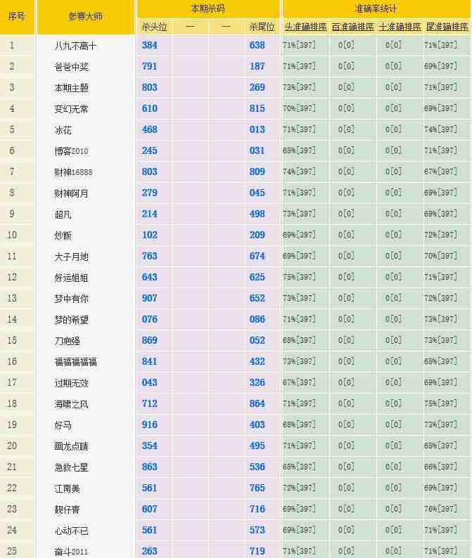 七星彩3025期特区杀三头三尾统计 发表于:2024-04-18 10:02:32 浏览次数:985 详情登录https://www.tqcp.net/stswkill_sj.html 上一篇:七星彩3025期特区杀一头一尾统计 下一篇:排列五24099期点播推荐天天向碼、换位思考1和毛毛1 3位分析师 【春哥打奖】 范围码15红11 点播26030期 【天意人生】 范围码15红9 点播26030期 【彩女】 范围码15红9 点播26030期 七星彩杀码荣誉榜