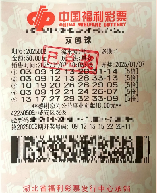 1月7日晚,福彩双色球第2025003期开奖,我省彩民共中得9注二等奖,每注奖金为22万元。咸宁市咸安区农委旁的福彩第42230509号站点便中得其中的5注,总奖金高达110万元。究竟是一个人幸运中奖,还是多人共同中得呢?谜底在1月9日上午揭晓,当时魏女士(化姓)在儿子的陪同下现身省福彩中心兑奖。