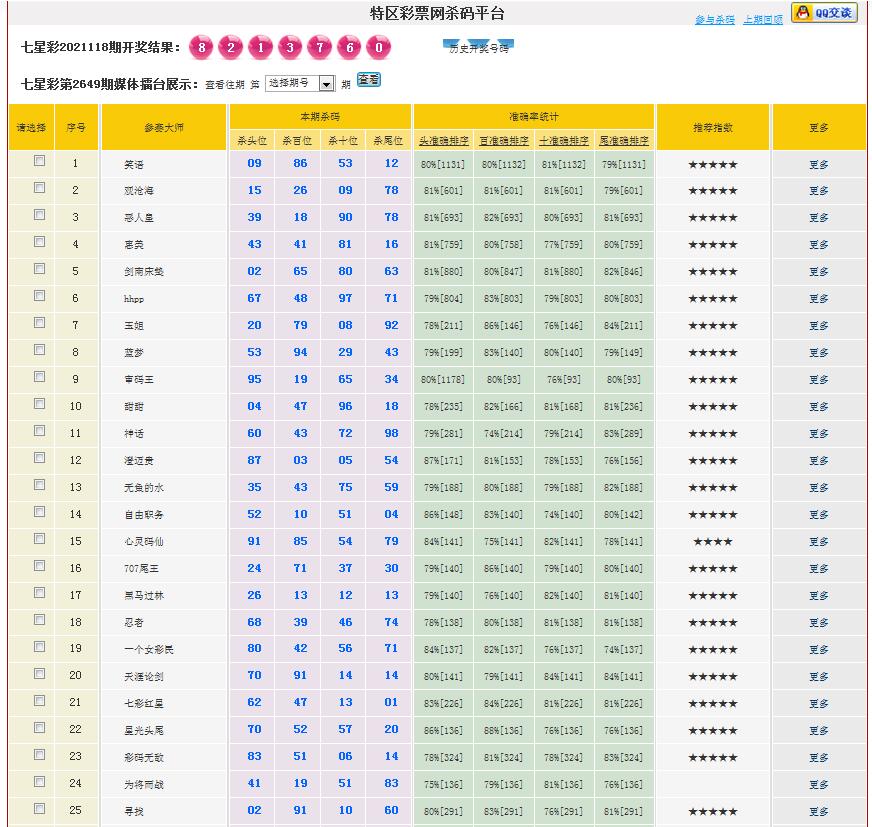 2649期:特区杀二头二尾平台统计 发表于:2022-10-14 09:52:15 浏览次数:690 详情登录 https://www.tqcp.net/kill_new_sj.php 上一篇:2648期:特区杀二头二尾平台统计 下一篇:2650期:特区杀二头二尾平台统计 【笑语】 范围码15红10 点播25326期 【天时地利】 范围码15红9 点播25326期 【无敌通杀】 范围码15红9 点播25326期 排列五杀码荣誉榜