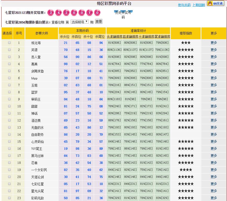 2654期:特区杀二头二尾平台统计 发表于:2022-10-14 09:52:15 浏览次数:693 详情登录 https://www.tqcp.net/kill_new_sj.php 上一篇:2653期:特区杀二头二尾平台统计 下一篇:2655期:特区杀二头二尾平台统计 【笑语】 范围码15红10 点播25326期 【天时地利】 范围码15红9 点播25326期 【无敌通杀】 范围码15红9 点播25326期 排列五杀码荣誉榜