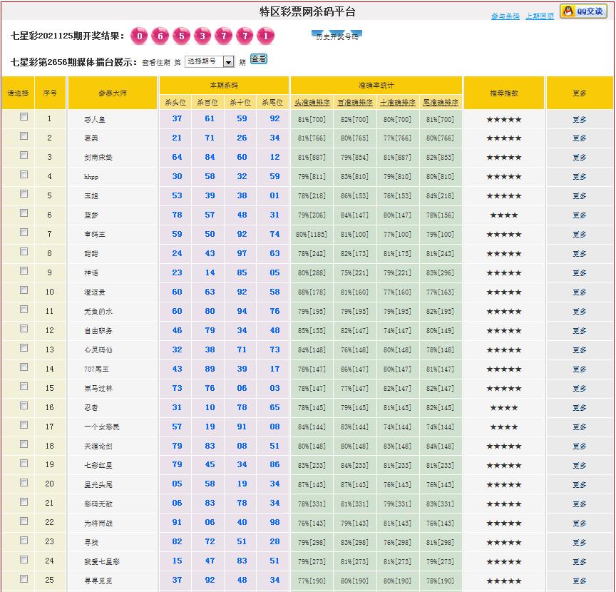 2656期:特区杀二头二尾平台统计 发表于:2022-10-14 09:52:15 浏览次数:692 详情登录 https://www.tqcp.net/kill_new_sj.php 上一篇:2655期:特区杀二头二尾平台统计 下一篇:2657期:特区杀二头二尾平台统计 【笑语】 范围码15红10 点播25326期 【天时地利】 范围码15红9 点播25326期 【无敌通杀】 范围码15红9 点播25326期 排列五杀码荣誉榜