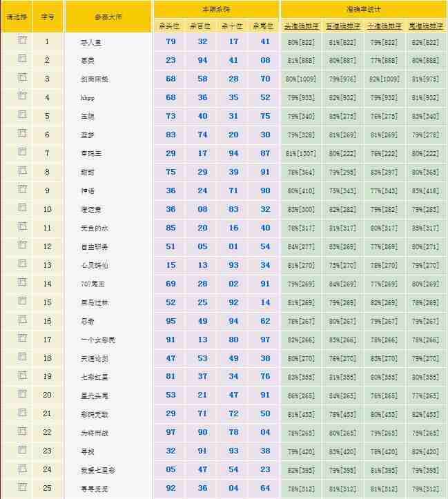 2778期:特区杀二头二尾平台统计 发表于:2022-10-14 09:52:15 浏览次数:837 详情登录https://www.tqcp.net/kill_new_sj.php 上一篇:2777期:特区杀二头二尾平台统计 下一篇:2779期:特区杀二头二尾平台统计 【春哥打奖】 范围码15红11 点播26030期 【天意人生】 范围码15红9 点播26030期 【彩女】 范围码15红9 点播26030期 排列五杀码荣誉榜