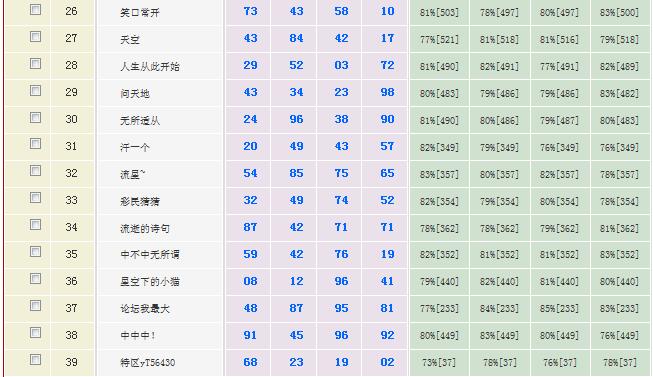 2816期:特区杀二头二尾平台统计 发表于:2022-11-24 12:01:08 浏览次数:1155 详情登录https://www.tqcp.net/kill_new_sj.php 上一篇:2816期:特区杀一头一尾统计 下一篇:2816期:特区杀三头三尾统计 【笑语】 范围码15红11 点播25325期 【在现江湖】 范围码15红9 点播25325期 【天时地利】 范围码15红9 点播25325期 排列五杀码荣誉榜