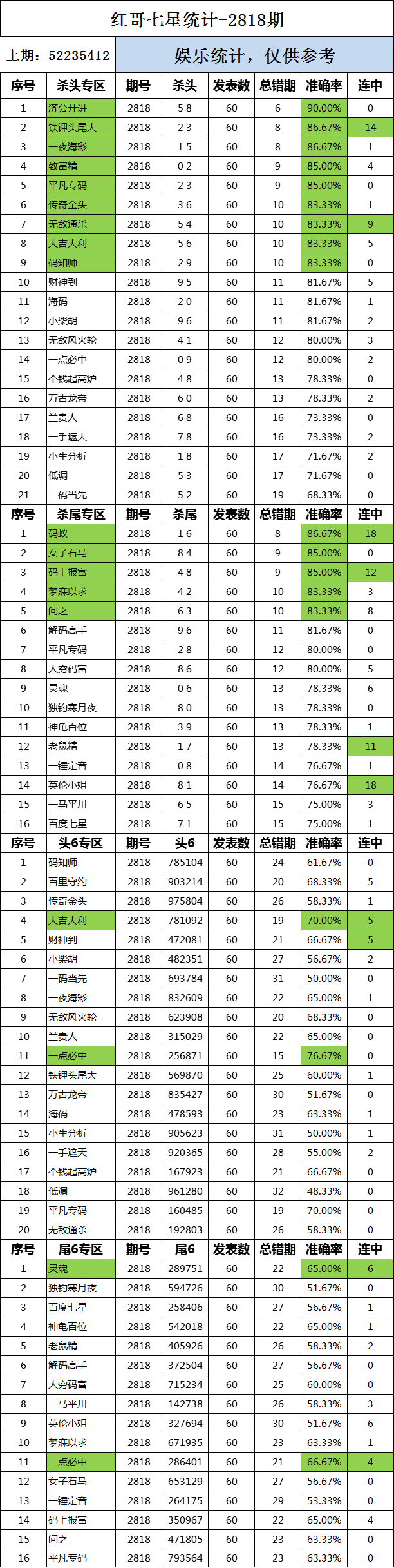 2818期:红哥统计 发表于:2022-11-28 12:01:10 浏览次数:1813 上一篇:2818期:特区杀三头三尾统计 下一篇:2818期:二爹统计 【春哥打奖】 范围码15红11 点播26030期 【天意人生】 范围码15红9 点播26030期 【彩女】 范围码15红9 点播26030期 排列五杀码荣誉榜