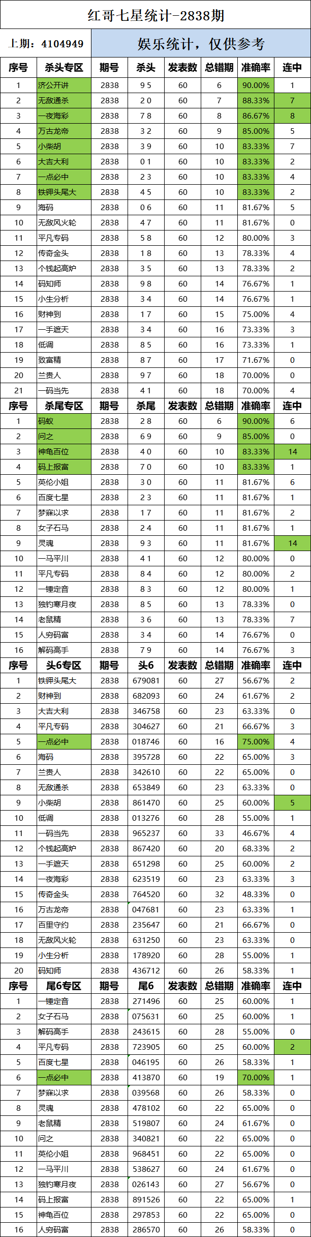 2838期:红哥统计 发表于:2023-01-14 15:31:19 浏览次数:1584 上一篇:2838期:特区杀二头二尾平台统计 下一篇:2838期:二爹统计 【笑语】 范围码15红11 点播25325期 【在现江湖】 范围码15红9 点播25325期 【天时地利】 范围码15红9 点播25325期 排列五杀码荣誉榜