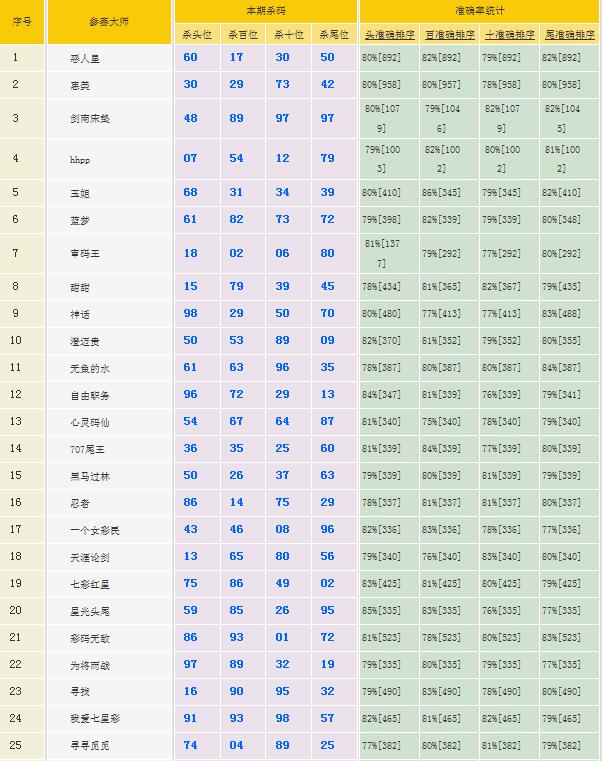 2848期:特区杀二头二尾平台统计 发表于:2023-02-16 16:00:58 浏览次数:1457 详情登录https://www.tqcp.net/kill_new_sj.php 上一篇:2848期:特区杀一头一尾统计 下一篇:2848期:特区杀三头三尾统计 【笑语】 范围码15红11 点播25325期 【在现江湖】 范围码15红9 点播25325期 【天时地利】 范围码15红9 点播25325期 排列五杀码荣誉榜